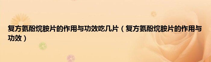 本文,复方氨酚烷胺片的作用与功效吃几片,复方氨酚烷胺片的作用与功效到此就分享完毕,希望对大家有所帮助。