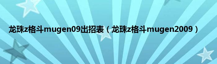 龙珠z格斗mugen09出招表(龙珠z格斗mugen2009)