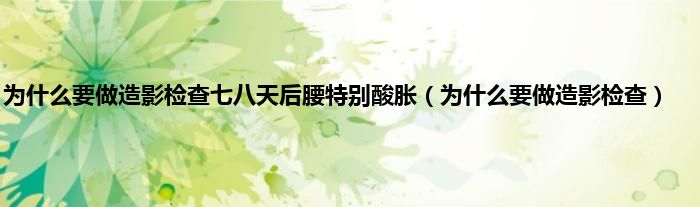 大家好,为什么要做造影检查七八天后腰特别酸胀,为什么要做造影检查很多人还不知道,现在让我们一起来看看吧!