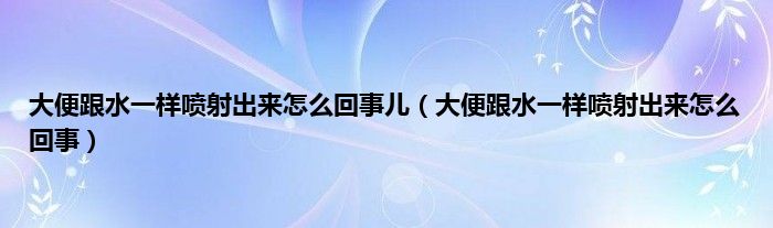 本文,大便跟水一样喷射出来怎么回事儿,大便跟水一样喷射出来怎么回事到此就分享完毕,希望对大家有所帮助。