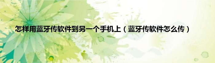 以上就是【怎样用蓝牙传软件到另一个手机上,蓝牙传软件怎么传】相关内容。