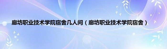 大家好,小问来为大家解答以上问题。廊坊职业技术学院宿舍几人间,廊坊职业技术学院宿舍这个很多人还不知道,现在让我们一起来看看吧!