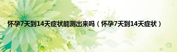 大家好,怀孕7天到14天症状能测出来吗,怀孕7天到14天症状很多人还不知道,现在让我们一起来看看吧!