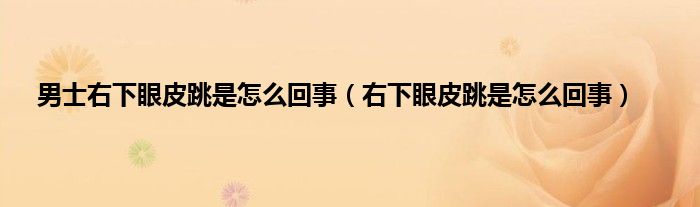 本文,男士右下眼皮跳是怎么回事,右下眼皮跳是怎么回事到此就分享完毕,希望对大家有所帮助。