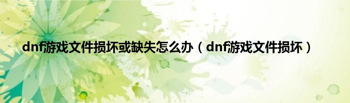 以上就是【dnf游戏文件损坏或缺失怎么办,dnf游戏文件损坏】相关内容。