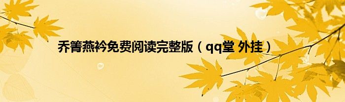 以上就是【乔箐燕衿免费阅读完整版,qq堂 外挂】相关内容。