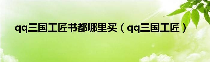 qq三国工匠书都哪里买(qq三国工匠)