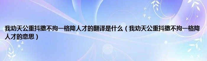 以上就是【我劝天公重抖擞不拘一格降人才的翻译是什么,我劝天公重抖擞不拘一格降人才的意思】相关内容。