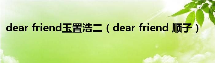 大家好,小问来为大家解答以上问题。dear friend玉置浩二,dear friend 顺子这个很多人还不知道,现在让我们一起来看看吧!