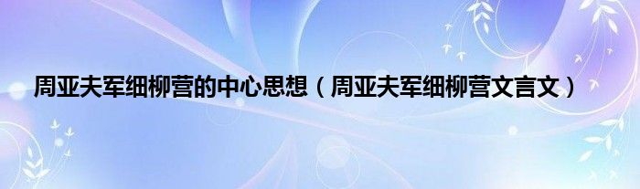 大家好,小问来为大家解答以上问题。周亚夫军细柳营的中心思想,周亚夫军细柳营文言文这个很多人还不知道,现在让我们一起来看看吧!