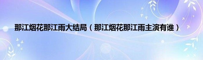 大家好,那江烟花那江雨大结局,那江烟花那江雨主演有谁很多人还不知道,现在让我们一起来看看吧!