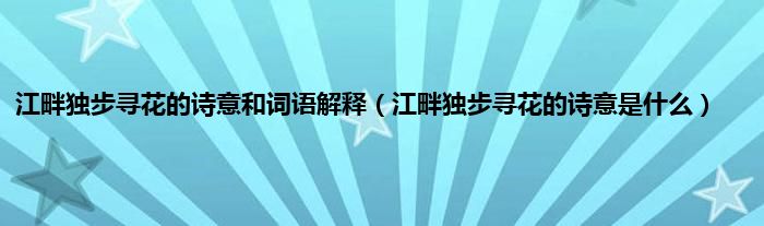大家好,江畔独步寻花的诗意和词语解释,江畔独步寻花的诗意是什么很多人还不知道,现在让我们一起来看看吧!