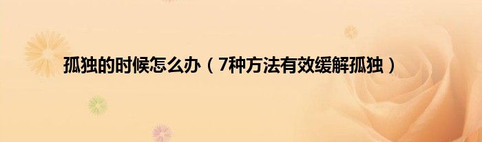 本文,孤独的时候怎么办,7种方法有效缓解孤独到此就分享完毕,希望对大家有所帮助。