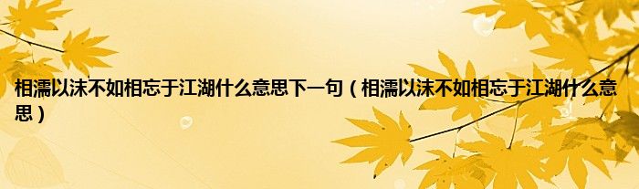大家好,相濡以沫不如相忘于江湖什么意思下一句,相濡以沫不如相忘于江湖什么意思很多人还不知道,现在让我们一起来看看吧!