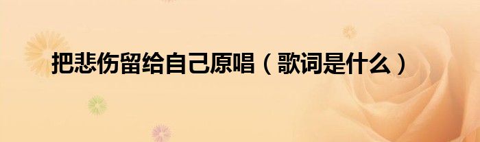 大家好,把悲伤留给自己原唱,歌词是什么很多人还不知道,现在让我们一起来看看吧!