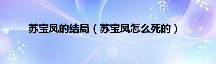 本文,苏宝凤的结局,苏宝凤怎么死的到此就分享完毕,希望对大家有所帮助。