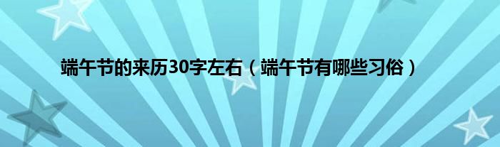 本文,端午节的来历30字左右,端午节有哪些习俗到此就分享完毕,希望对大家有所帮助。