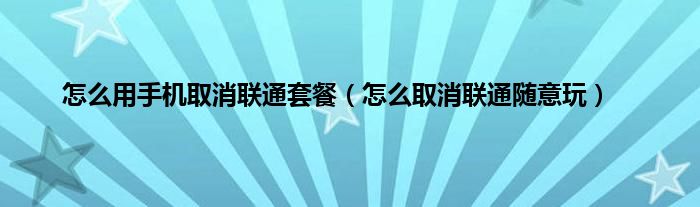 本文,怎么用手机取消联通套餐,怎么取消联通随意玩到此就分享完毕,希望对大家有所帮助。