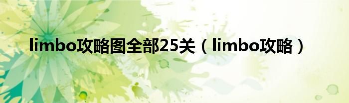 本文,limbo攻略图全部25关,limbo攻略到此就分享完毕,希望对大家有所帮助。