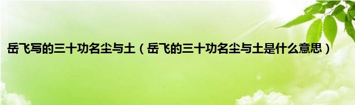 本文,岳飞写的三十功名尘与土,岳飞的三十功名尘与土是什么意思到此就分享完毕,希望对大家有所帮助。