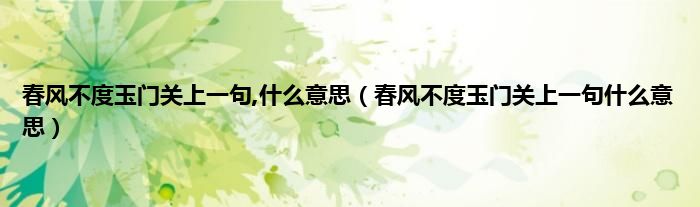 本文,春风不度玉门关上一句,什么意思,春风不度玉门关上一句什么意思到此就分享完毕,希望对大家有所帮助。