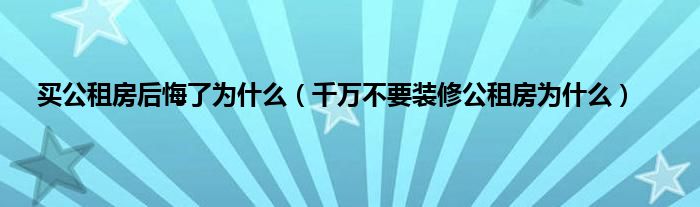 本文,买公租房后悔了为什么,千万不要装修公租房为什么到此就分享完毕,希望对大家有所帮助。