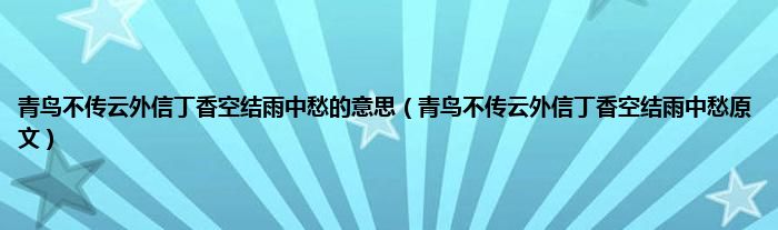 本文,青鸟不传云外信丁香空结雨中愁的意思,青鸟不传云外信丁香空结雨中愁原文到此就分享完毕,希望对大家有所帮助。
