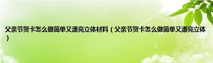 大家好,父亲节贺卡怎么做简单又漂亮立体材料,父亲节贺卡怎么做简单又漂亮立体很多人还不知道,现在让我们一起来看看吧!