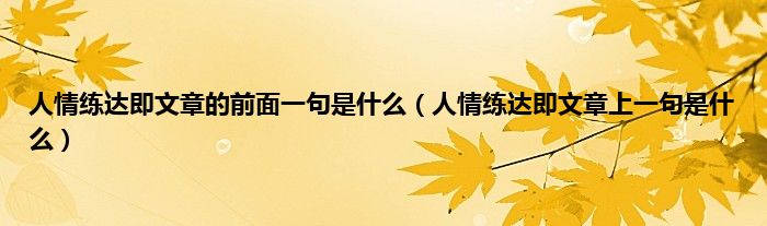 本文,人情练达即文章的前面一句是什么,人情练达即文章上一句是什么到此就分享完毕,希望对大家有所帮助。