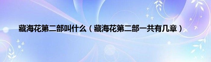 大家好,藏海花第二部叫什么,藏海花第二部一共有几章很多人还不知道,现在让我们一起来看看吧!
