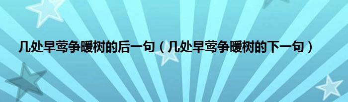 本文,几处早莺争暖树的后一句,几处早莺争暖树的下一句到此就分享完毕,希望对大家有所帮助。