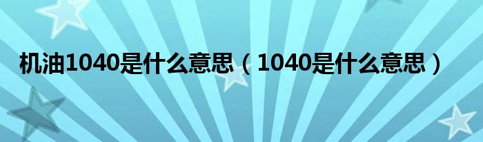 本文,机油1040是什么意思,1040是什么意思到此就分享完毕,希望对大家有所帮助。
