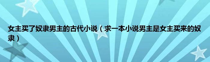大家好,女主买了奴隶男主的古代小说,求一本小说男主是女主买来的奴隶很多人还不知道,现在让我们一起来看看吧!