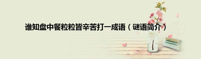 大家好,谁知盘中餐粒粒皆辛苦打一成语,谜语简介很多人还不知道,现在让我们一起来看看吧!