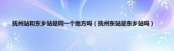 本文,抚州站和东乡站是同一个地方吗,抚州东站是东乡站吗到此就分享完毕,希望对大家有所帮助。