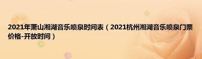 本文,2021年萧山湘湖音乐喷泉时间表,2021杭州湘湖音乐喷泉门票价格-开放时间到此就分享完毕,希望对大家有所帮助。