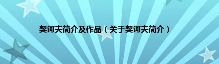 本文,契诃夫简介及作品,关于契诃夫简介到此就分享完毕,希望对大家有所帮助。
