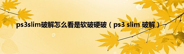 以上就是【ps3slim破解怎么看是软破硬破,ps3 slim 破解】相关内容。