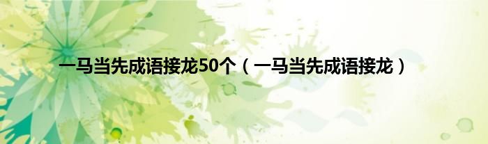 本文,一马当先成语接龙50个,一马当先成语接龙到此就分享完毕,希望对大家有所帮助。
