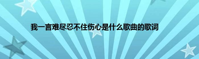 本文,我一言难尽忍不住伤心是什么歌曲的歌词到此就分享完毕,希望对大家有所帮助。